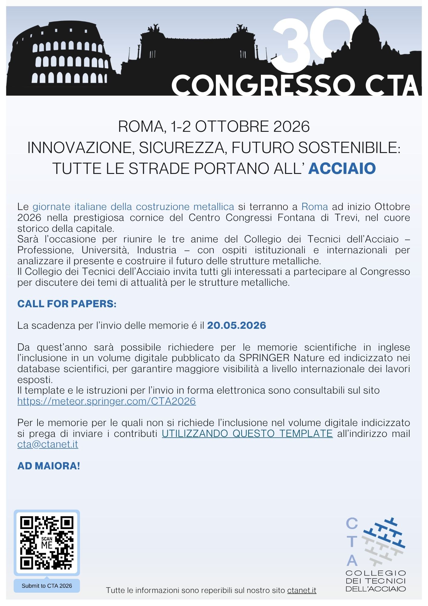 Il CTA – Collegio dei Tecnici dell’Acciaio – è l’associazione culturale leader per il perfezionamento e la promozione delle costruzioni in acciaio in Italia.