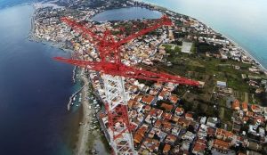 La foto aerea dell’articolo e quelle qui riportate mostrano poi le dimensioni reali della torre dell’elettrodotto, e scoprire che la sua altezza è solo la metà di quella delle ipotizzate torri sulle sponde dello Stretto non può non farci riflettere sull’oggettivo impatto visuale di tali torri e sul forte divario di scala tra esse, il costruito e l’ambiente circostante: la spiaggia, le case a dimensione famigliare, il delicato promontorio di Capo Peloro e i bei laghetti di Ganzirri e Pantano Piccolo, appaiono quasi mortificati da un’opera così vicina e di fatto invasiva e di così grande altezza rispetto alla loro estensione.