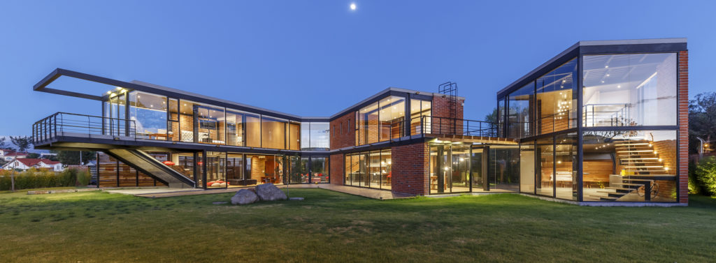 Acciaio e laterizio si alternano in questo progetto per una abitazione bifamiliare, che abbina il linguaggio industriale e innovativo dell’acciaio e vetro al calore e domesticità del laterizio. Una dicotomia tra leggerezza e trasparenza da una parte e massività e opacità dall’altra che si risolve in un equilibrio armonioso dell’architettura e in un comfort calibrato degli spazi interni.