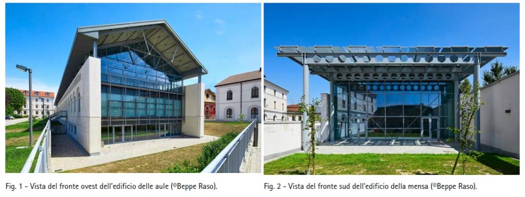 Negli edifici per le attività didattiche e la mensa del campus di Novara dell’Università del Piemonte orientale, l’acciaio riveste un ruolo di grande rilievo, proponendosi, in modo particolare nell’edificio delle aule, come soluzione originale capace di riprendere e declinare in chiave contemporanea alcuni elementi caratteristici degli edifici ottocenteschi.