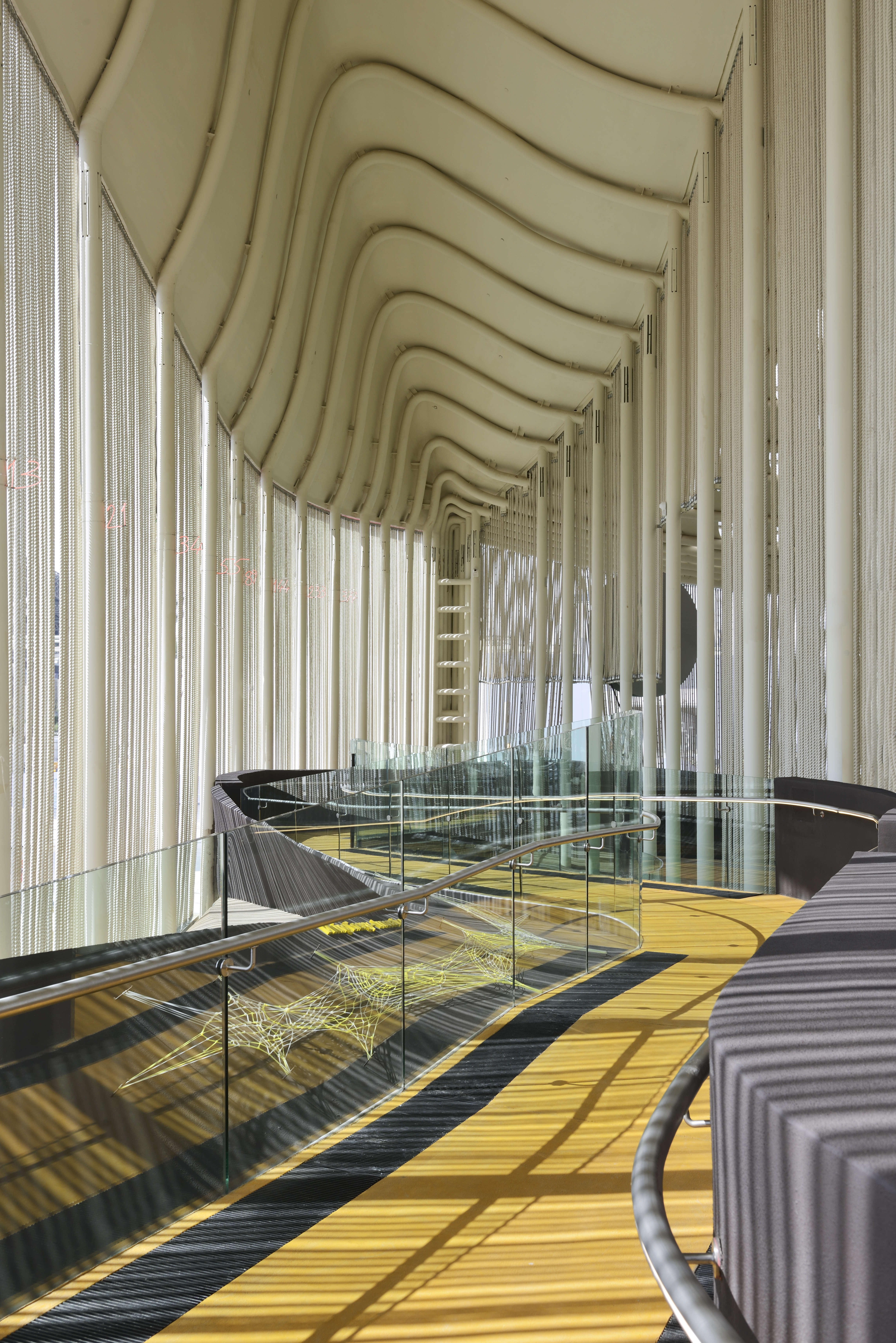 La continuità delle colonne con archi e catenarie, tutte a curvature variabili senza cuspidi ed angoli vivi, è la massima rappresentazione della fluidità delle forme che caratterizza il padiglione (figura 3).
