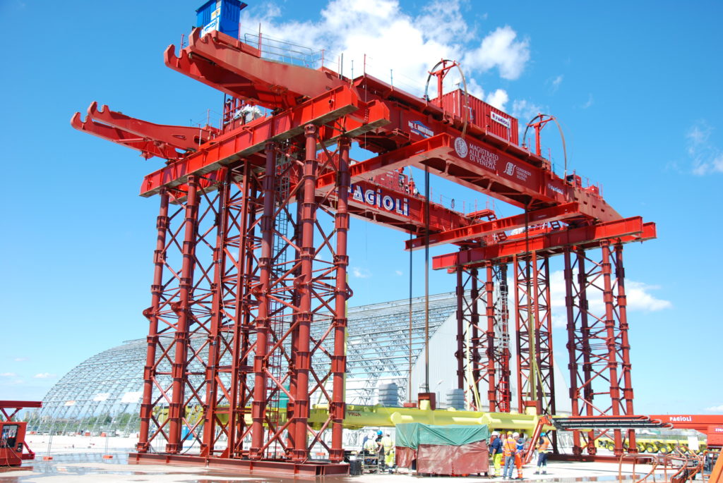 Il presente articolo descrive l’esperienza fatta dalla Azienda Fagioli durante il progetto MOSE, nel contesto del Piano Generale degli Interventi per la salvaguardia di Venezia e della sua laguna. Tale progetto riguarda la realizzazione di un sistema di barriere mobili per la protezione dalle acque alte. Fagioli è stata coinvolta nell’installazione dei cassoni di soglia per la Bocca di porto di Lido Treporti e delle paratoie per la stessa bocca e per le bocche di Lido di Malamocco e di Chioggia. Per poter eseguire queste attività la Fagioli ha progettato, costruito, testato e messo in opera attrezzature speciali, che verranno descritte in dettaglio nel presente articolo. Per l’installazione dei cassoni è stato realizzato un natante configurato a catamarano, utilizzando due chiatte fluviali, connesse da travi di collegamento, attrezzato con strand jacks. Per l’installazione delle paratoie è stata realizzata la Cavalletta di Varo, un portale che viene posizionato sopra i cassoni di soglia, tramite il quale le paratoie vengono calate nella loro sede ed incernierate ai cassoni. La Cavalletta di Varo è stata realizzata in due modelli, CV.01 e CV.02, per adattarsi alle diverse profondità delle bocche di porto e alle diverse dimensioni e pesi delle paratoie.
