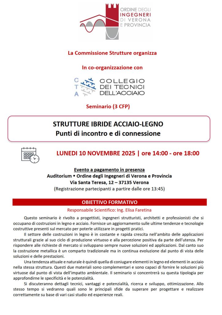 SEMINARIO: Strutture ibride Acciaio-Legno. Punti di incontro e di connessione – Verona, lunedì 10 novembre 2025