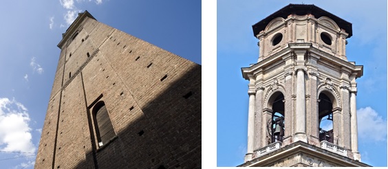 Il campanile realizzato tra il 1468 ed il 1470, esisteva già prima della costruzione del nuovo duomo avvenuta, tra il 1491 ed il 1498, sull’area di tre chiese paleocristiane dedicate al Salvatore, a San Giovanni Battista e a Santa Maria che facevano parte di un complesso vescovile articolato (che occupava due insulae romane) compreso fra le mura, l’attuale Palazzo Reale e via XX Settembre. Tra il 1720 e il 1723 furono realizzati i lavori di coronamento dell’architetto Filippo Juvarra, che vedevano il campanile “sopraelevarsi” con l’introduzione della cella campanaria che dava così un vestito più elegante e regale allo stile romanico edificato trecento anni prima. La torre interamente in muratura portante “a sacco”, si erge con una pianta quadrata di dimensioni 9,70 x 9.70 m, con
