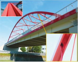 The installation is comparatively easy, and for lengths up to 20m they are an efficient solution. Arch out of rolled sections linked with hangers out of solid threaded bars both in S460 or higher grades are consistent choices which make this bridge typology technically accessible and economically convenient. Lately more than twenty bridges using this arch typology were built in Europe [6].[…]