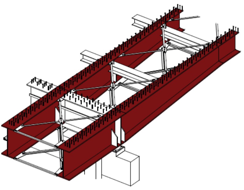 Lo schema statico è quello di campate a travata isostatica, formate da elementi prefabbricati in cemento armato precompresso con sezione a doppio cassone. I cassoni sono precompressi longitudinalmente mediante cavi scorrevoli post tesi.
