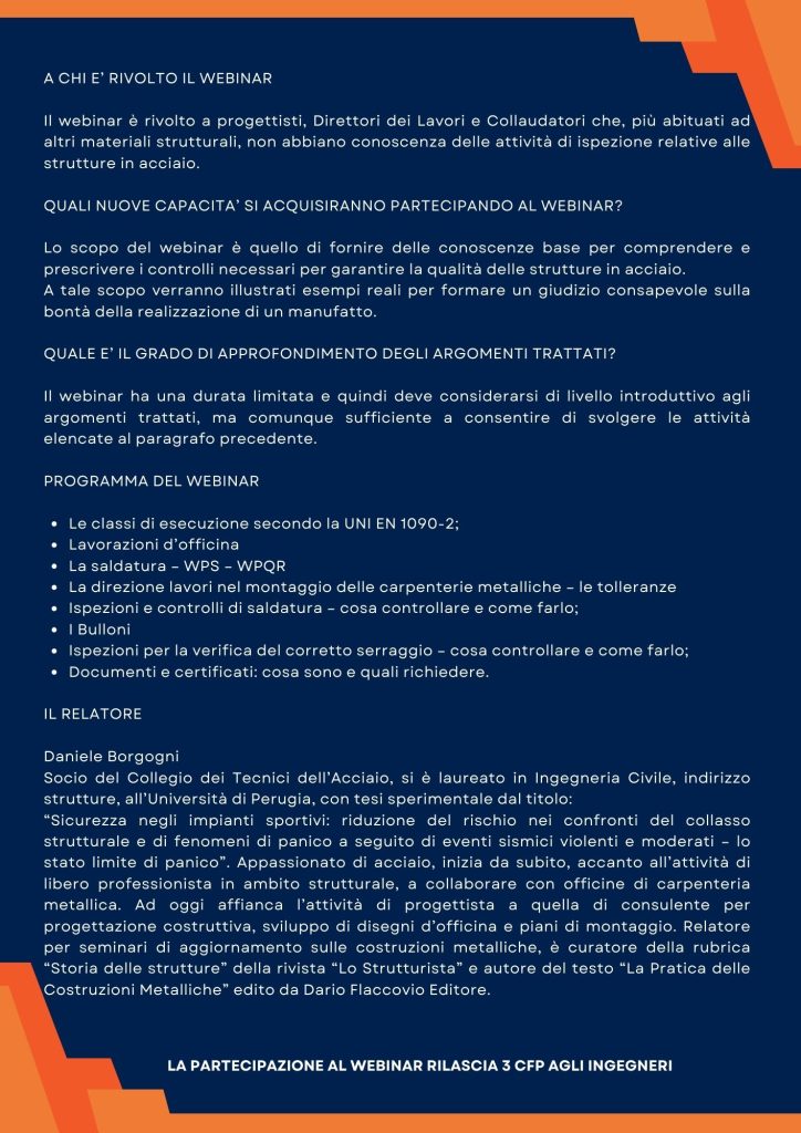 CONTROLLO E COLLAUDO DI STRUTTURE IN ACCIAIO: TEORIA VS PRATICA – 25 ottobre 2024