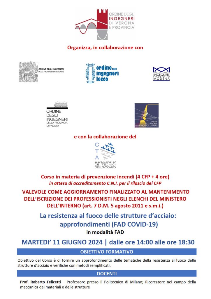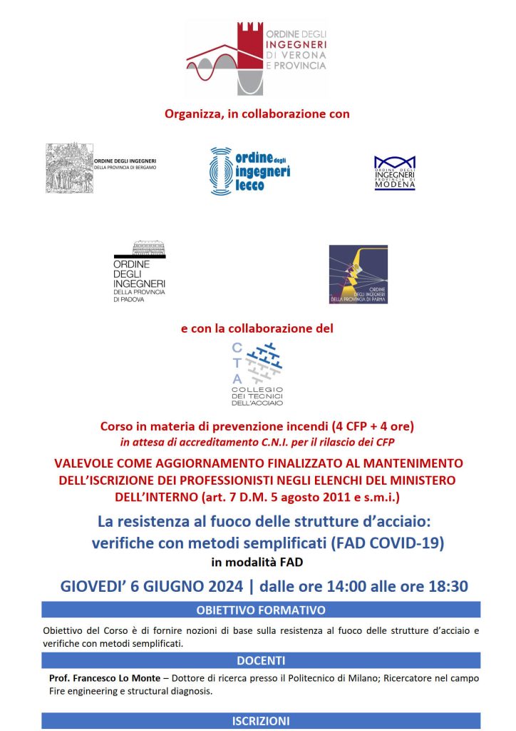 Corsi in materia di prevenzione incendi presso ordine degli Ingegneri di Verona