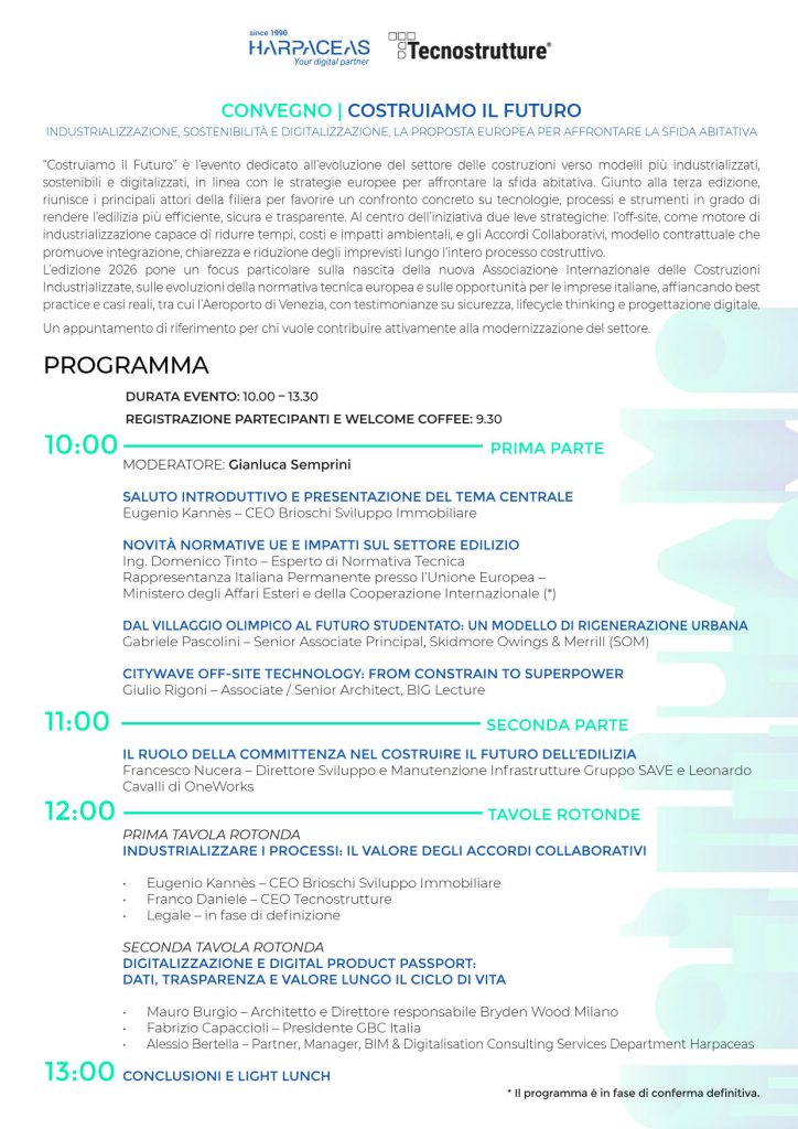 Costruiamo il futuro: Dall’On-site all’Off-site, Industrializzazione, sostenibilità e digitalizzazione, la proposta europea per affrontare la sfida abitativa
