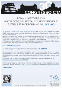 WEBINAR: Fatica nelle strutture in acciaio (terza edizione): 3 e 12 dicembre 2025 9 Novembre 2025 Leggi Tutto »