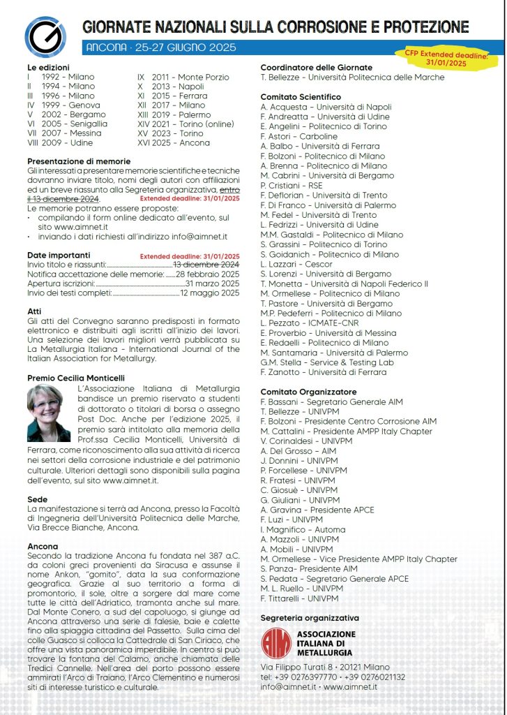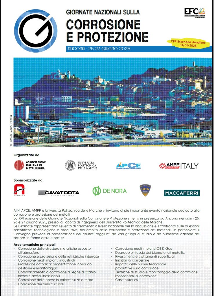 Giornate Nazionali sulla Corrosione e Protezione – XVI edizione -Ancona – 25-27 giugno 2025