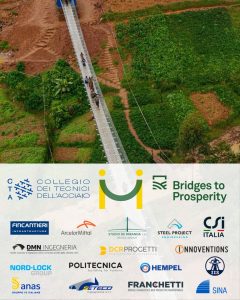 Il collegio dei Tecnici dell’Acciaio si propone quindi di continuare a portare dei valori di unione e di progresso grazie alla tecnica, e per questo motivo abbiamo stabilito una collaborazione con l’associazione Bridges to Prosperity per costruire insieme un ponte in Rwanda ad inizio 2026. L’opera servirà alle comunità rurali migliorando la loro sicurezza e sarà un ponte in acciaio di tipologia a ponte sospeso a funi.