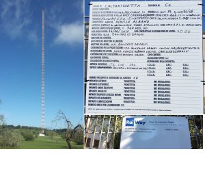 L’antenna è un’asta tralicciata, di lunghezza di 286 m, incernierata alla base e con doppio ordine di stralli costituiti da 8 funi in acciaio che ancorano il traliccio, rispettivamente, 4 a quota 120 m e gli altri 4 a quota 231,5 m ed ancorati a terra in 4 punti mediante opportuni blocchi in calcestruzzo.