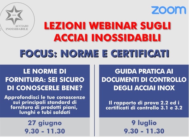 LEZIONI WEBINAR SUGLI ACCIAI INOX (27 giugno, 9 luglio 2024)