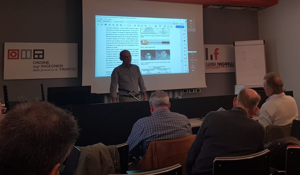 Dopo la pubblicazione del Quaderno, l’ing. Perenthaler, non certo nuovo ad esperienze didattiche nel campo della bulloneria e degli acciai, ha iniziato un’opera di diffusione dei contenuti del Quaderno, mediante specifici seminari patrocinati dal CTA. Il primo si è svolto presso l’Ordine degli Ingegneri della provincia di Bolzano in due mezze giornate, il 23 maggio ed il 6 giugno 2019. Sono poi seguiti due seminari presso gli Ordini di Trento (24 ottobre) e Venezia (29 ottobre), svolti nell’intera giornata. Sarà poi la volta dell’Ordine di Brescia, dove il seminario è programmato per il 5 e il 12 novembre, mentre contatti sono in corso per svolgere il seminario anche a Genova e Firenze.