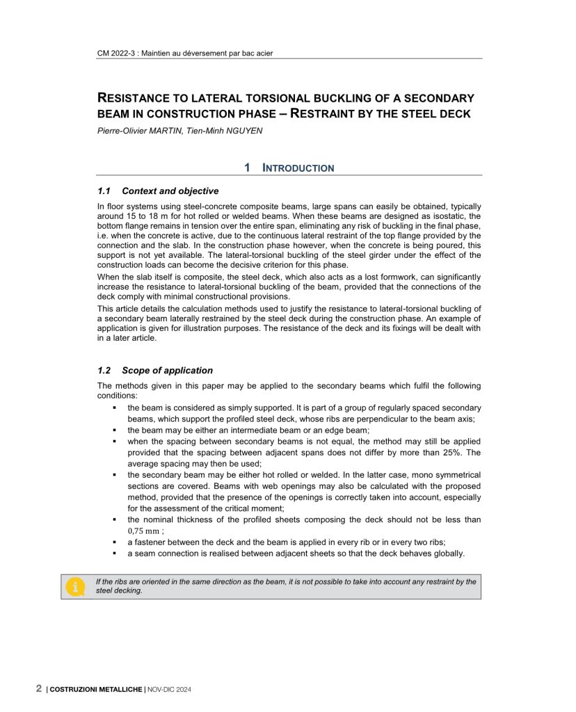 RESISTANCE TO LATERAL TORSIONAL BUCKLING OF A SECONDARY BEAM IN CONSTRUCTION PHASE – RESTRAINT BY THE STEEL DECK (Costruzioni Metalliche, n. 6/2024)