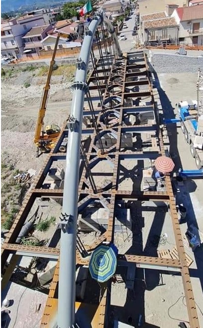 Sulla strada litoranea che collega due grossi centri della provincia di Messina, Milazzo e Barcellona, il ponte Calderà sovrapassa il torrente Longano e prende il nome della località omonima in cui si trova. Il 22 novembre 2011 intense e persistenti piogge interessarono la provincia di Messina, creando notevoli disagi anche nel Comune di Barcellona Pozzo di Gotto. L’alluvione che si abbattè su questa area determinò la piena del Torrente Longano che a sua volta provocò il cedimento strutturale del Ponte Calderà (figura 2). Il ponte, di una lunghezza complessiva di circa 40 m, era diviso in cinque campate con quattro pile in alveo. L’impalcato era costituito da travi prefabbricate in cemento armato precompresso con schema portante isostatico (figura 1). Il crollo fu causato dal cedimento delle fondazioni della pila 2 che determinò la rotazione rigida delle campate due e tre. La situazione dell’impalcato risultava quindi estremamente critica e l’infrastruttura completamente inagibile. Il recupero della struttura esistente non era una soluzione praticabile.[…]