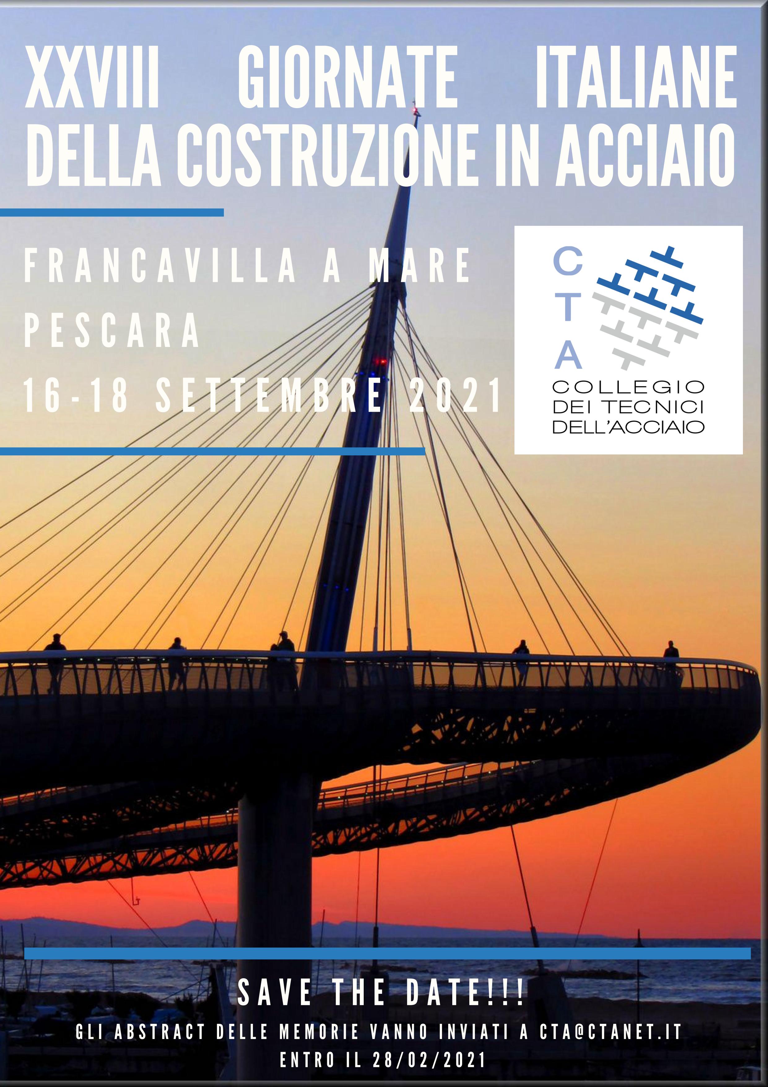 SAVE THE DATE: XXVIII Giornate Italiane della Costruzione in Acciaio – Pescara, 16-18 settembre 2021