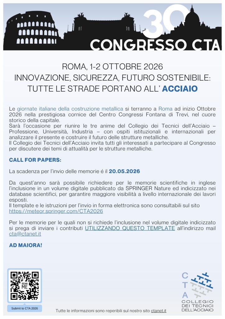 CALL FOR PAPER: XXX Congresso CTA 2026