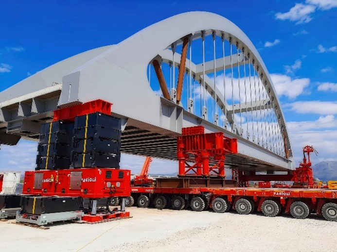 L’azienda Fagioli di Reggio Emilia ha una lunga storia nella movimentazione e installazione di sezioni di ponte, tradizione legata, in particolar modo, all’uso di martinetti idraulici a recupero di cavi strand jacks con capacità per singola unità che varia tra 15 e 750 t. Le capacità di sollevamento pressoché illimitate di questi martinetti (se utilizzati in più unità) hanno reso possibile negli anni l’installazione di sezioni di ponte dal peso di migliaia di tonnellate. Uno fra tutti, ultimo in ordine cronologico, vogliamo ricordare l’installazione di sezioni fino a 2.000 t del nuovo ponte S. Giorgio a Genova, costruito dal consorzio PERGENOVA (Salini Impregilo, ora Webuild e Fincantieri Infrastructures).