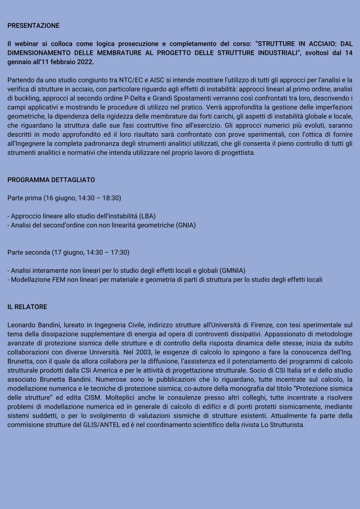 Webinar: STRUTTURE IN ACCIAIO: ANALISI LINEARI E NON LINEARI