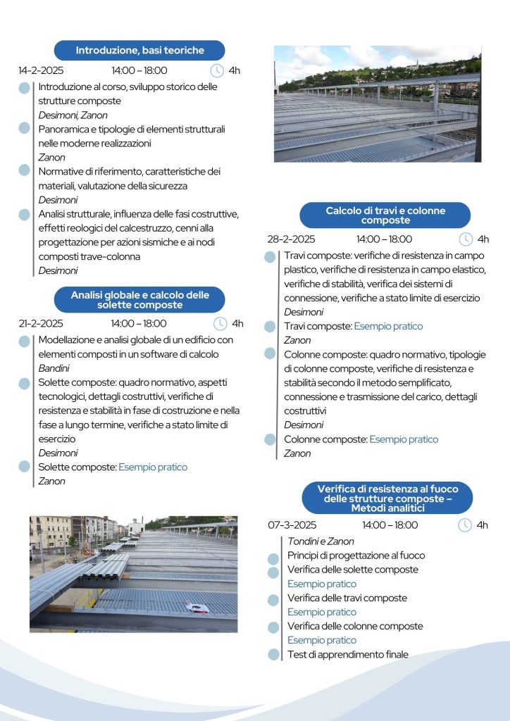 WEBINAR ANALISI E PROGETTAZIONE DELLE STRUTTURE COMPOSTE ACCIAIO-CALCESTRUZZO SECONDO L’EUROCODICE 4 – 14,21,28 febbraio e 7 marzo 2025