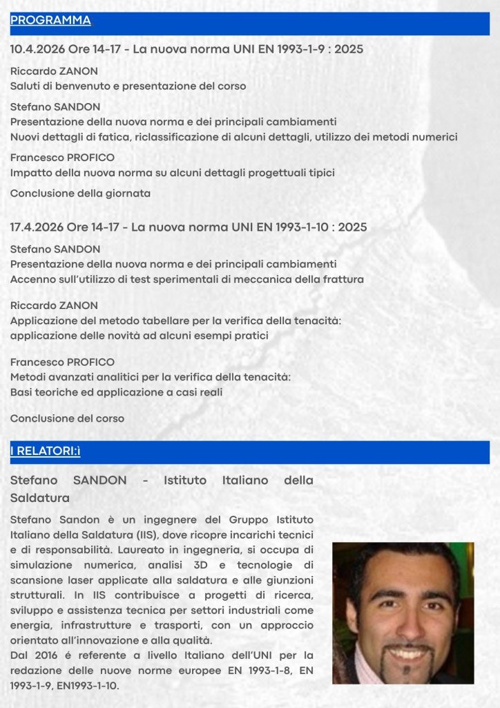 WEBINAR: LE NUOVE NORME EUROPEE PER LA VERIFICA DELLA FATICA E DELLA TENACITA’